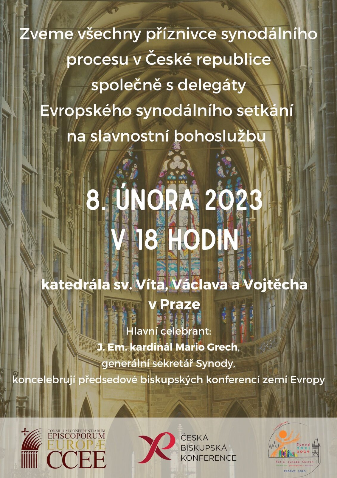 V rámci Evropského synodálního setkání se v pražské katedrále uskuteční 8. února 2023 slavnostní bohoslužba za účasti delegátů z celé Evropy. Mši, která začíná v 18 hodin, bude předsedat sekretář Synody kardinál Mario Grech, spolu s ním budou koncelebrovat předsedové evropských biskupských konferencí. Mše je otevřená pro veřejnost a jsou na ni zvání všichni příznivci synodálního procesu v České republice.